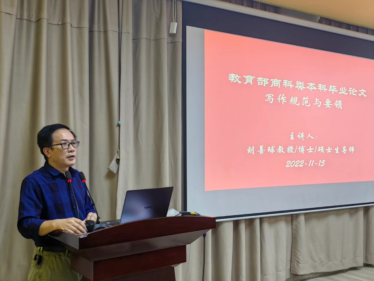 为规范本科毕业论文撰写要求,落实毕业论文的各项环节,稳步推进和部署2023届本科毕业论文指导工作,11月15日下午,williamhill英国官网副院长刘善球教授在学院报告厅主持召开题为“教育部商科类本科毕业论文写作规范与要领”的专题指导讲座。williamhill英国官网副校长兼williamhill英国官网院长陈美华教授,williamhill英国官网副院长杨旻、周书域,各教学系、教研室、实验区负责人及全体专任教师参加了讲座。
