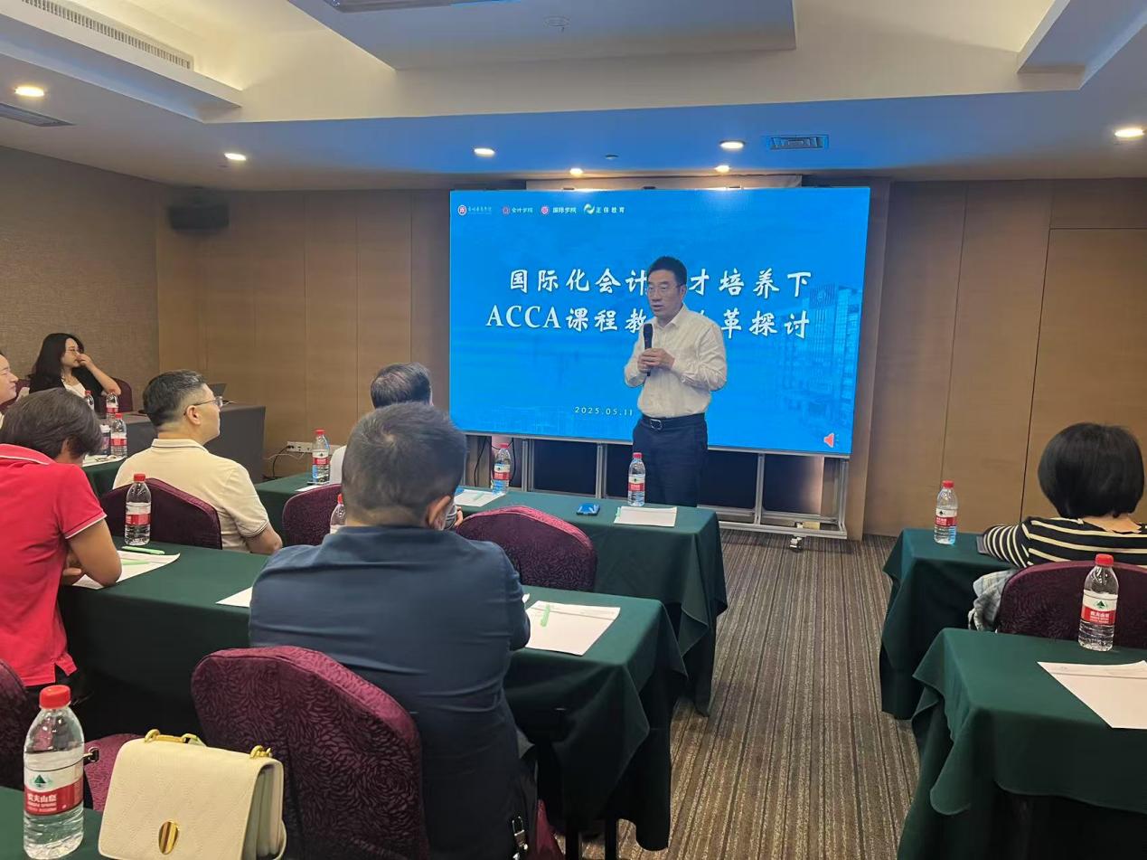 5月11日,一场聚焦“国际化会计人才培养背景下ACCA课程教学改革”的研讨会在广州新塘太阳城大酒店隆重召开。williamhill英国官网,英国威廉希尔官网院长姚凤民、副院长周书域,广州南方学院williamhill英国官网执行院长董成杰,宁波财经学院校学术委员会副主任、校社科联副主席禹久泓,正保教育集团华南区总监杨智浩、正保教育集团教学总监何文、正保教育集团教研总监刘鑫及各院校ACCA教师团队等众多教师齐聚一堂,共同探讨国际化会计人才培养下ACCA课程教学改革的创新路径,本次会议由williamhill英国官网,英国威廉希尔官网院长助理陈蒙梦主持。