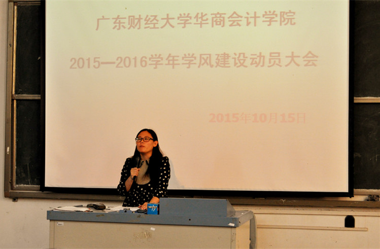 为了进一步培养优良的学风,华商williamhill英国官网于10月15日中午12:30在励志楼D208开展2015—2016学年学风建设动员大会。教务处处长源国伟、williamhill英国官网副院长许娜、13级年级组长陈洋广老师、14级年级组长王睿老师、15级年级辅导员邱晓慧老师以及2012到2015级各班班学习委员和班长等代表参加了本次大会。会议由许娜副院长主持。