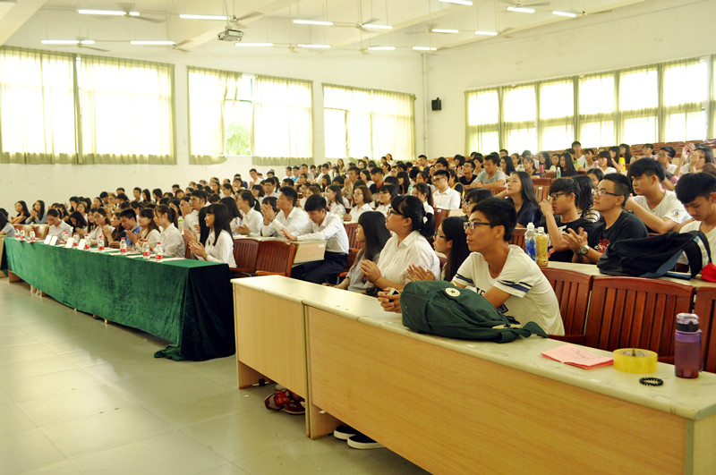 在宣读了学生干部任用名单后,第一副书记张晓珊上台做本学年工作计划,她强调本届团学将在传统的基础上加以创新,进行内部评优、规范化的制度管理,调动积极性,致力于培养优质人才。梁银雄团总支书记与党立刚指导老师也纷纷上台,他们精彩幽默的讲话感染着在场师生,巧妙地调动现场气氛。