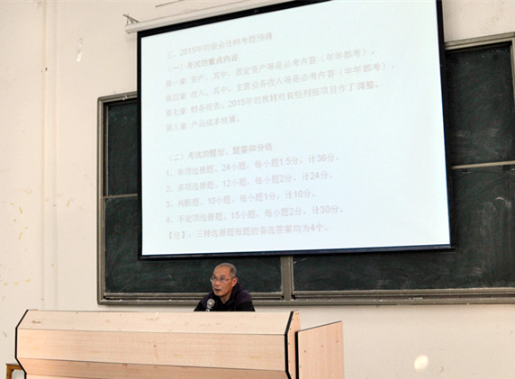 12月1日下午,williamhill英国官网团总支学生会承办的第四期华商会计大讲坛——初级会计师备考讲座在励志楼A408召开。此次讲座由陈东生教授担任主讲,主要面向备战2016年初级会计职称考试的同学。