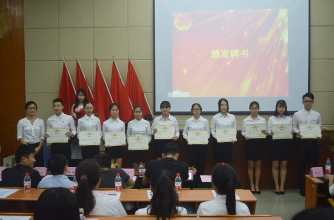 接着,学生会主席代表williamhill英国官网第三届团总支学生会向大会作了工作报告。陈洋广老师、陈丽敏老师、梁银雄老师和苏博云老师分别给第三届的常委团、部长、副部长和干事颁发聘书。团总支书记梁银雄表示:聘书是对干部们的肯定,希望下一届干部能够继承上届的优良传统,认真总结,发挥优势,完善自我,开拓思路,求实创新,成就更好的团学。