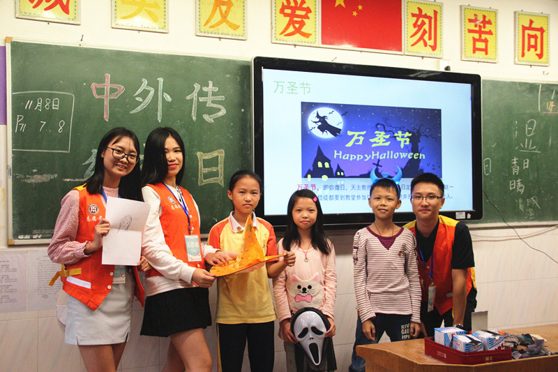 下午2点,志愿者们踏进了期待已久的校园,内心热情高涨。凉爽的秋风吹散了笼罩在大地的热气,欢声笑语充满了整个校园,孩子们活泼可爱的身影成为了校园的一道靓丽风景线。下午2点10分,爱心支教正式开始。志愿者分别到不同的教室,而原本乱哄哄的教室在志愿者的组织下变得井井有序。他们通过故事、游戏、奖励、视频等方式激发小朋友们的学习兴趣,将中外传统节日习俗知识传授给小朋友。原本追逐打闹的小朋友也投入到小老师的精彩教学活动中。课间活动时,志愿者和小朋友打成一片,玩乒乓球、跳绳、嬉戏打闹……你中有我,我中有你,志愿者将爱心渗透到每一个活动中。
