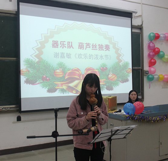 紧接着,艺术团带来了精彩的表演,歌手队余音绕梁的《少年锦时》,器乐队扣人心弦的竹笛独奏《赛马》,话剧队令人捧腹大笑的脱口秀《后宫升职记》,博得了观众的热烈的掌声。在表演后,进入了一个搞笑而刺激的游戏――萝卜蹲,学生与老师积极参赛,现场气氛活跃,充满了欢声笑语。