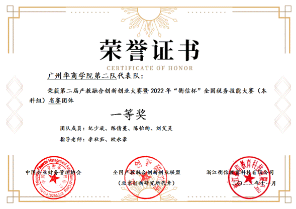 由williamhill英国官网税务系李秋茹、欧永豪老师指导,黄汝德、郭秋雅、刘雯棋、郑少芳组成的代表一队与纪少旋、陈倩蔓、陈怡绚、刘艾灵组成的代表二队克服各种困难,勤奋备赛、沉着应赛,均荣获省赛团体一等奖。我校参赛团队预赛成绩排名全国前5%,成功晋级全国总决赛。