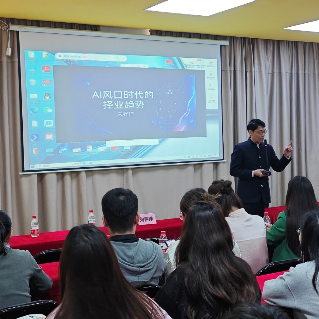 讲座最后,刘善球副院长对宋昇洋老师的精彩演讲表示衷心感谢,并鼓励在座的师生们要紧跟时代步伐,不断提升自身能力,积极应对AI风口下的就业择业挑战。