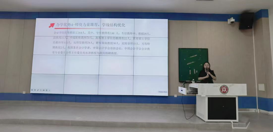 陈蒙梦老师全面介绍了学院概况、会计学专业特色、学院优势、培养模式、毕业生就业去向以及丰富的专业竞赛机会,为新生们描绘了清晰的学习蓝图。