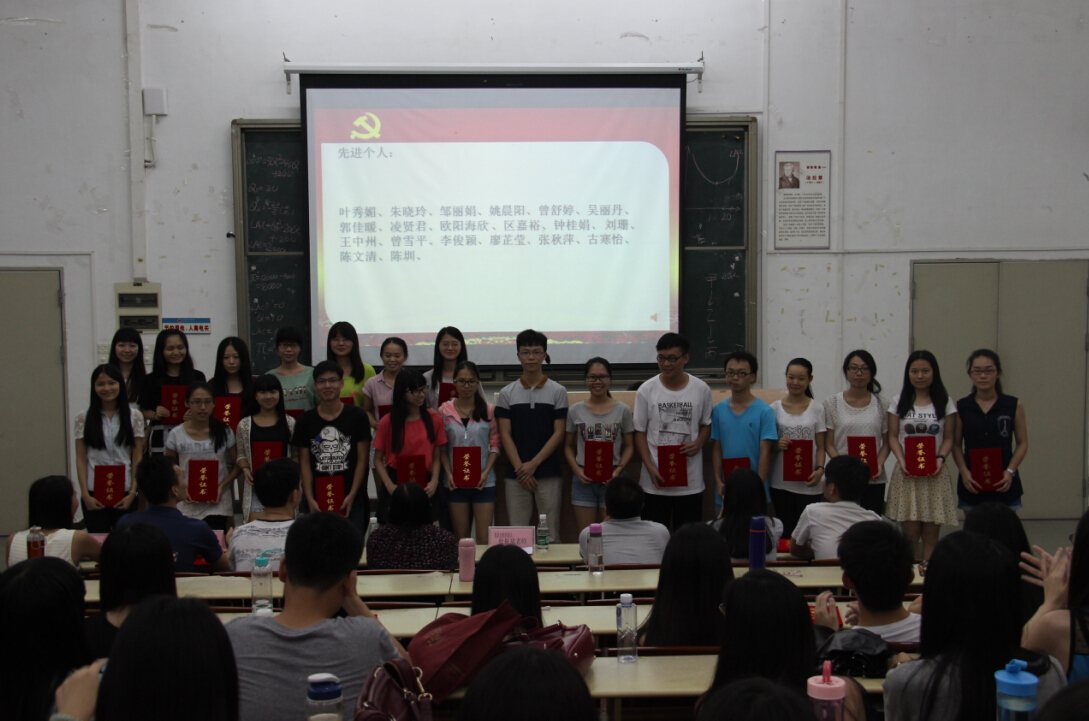 组织委员叶振斌老师宣读了表彰决定,公布陈少明等3名党员评为“优秀党务工作者”、黄惠欢等40名党员评为“优秀党员”、叶秀媚等20名党员评为“先进个人”,希望大家以此为励,继续努力,在做好基本工作的基础上更好地展现自己;并携在座的嘉宾为受表彰的党员同志颁发荣誉证书。