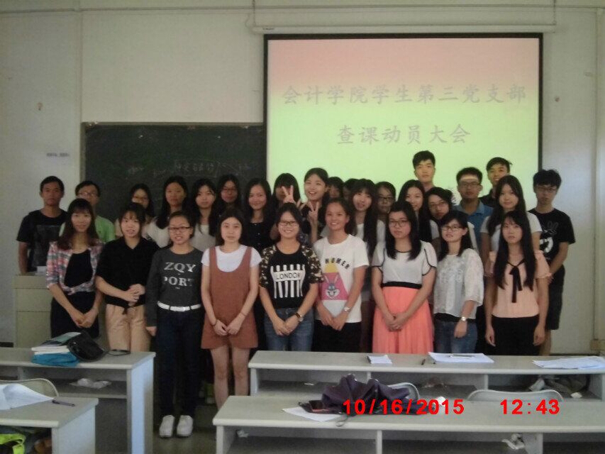 为加强williamhill英国官网学风班风建设,充分发挥党员的先进模范作用,落实学院党总支的工作要求,williamhill英国官网学生第三党支部于2015年10月16日在励志楼A203举行“williamhill英国官网学生第三党支部查课动员大会”,出席本次会议的人员有williamhill英国官网学生第三党支部全体学生党员。本次会议由纪检委员曾林冠同志主持。