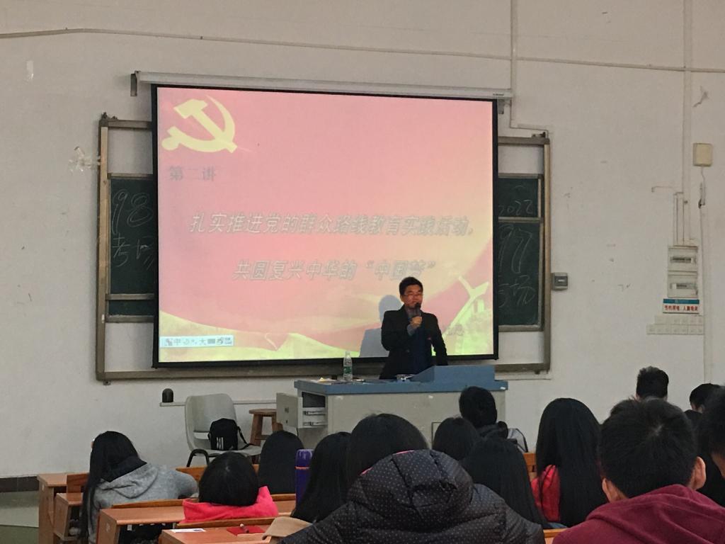 李书记主要讲述了党的群众路线的内容及历史沿革、党的群众路线教育实践活动的时代背景、党的群众路线教育实践活动的内容和推进党的群众路线教育实践活动的意义这四大方面。李书记还通过自己的一些亲身经历和体会,由浅入深地介绍了群众路线,例如作为一名班长、社团负责人、团总支主席,如何依靠群众的力量完成一些工作任务。同时,李书记也要求全体党员同志也要“照镜子、正衣冠、洗洗澡、治治病”,树立好一名合格的党员的良好形象。