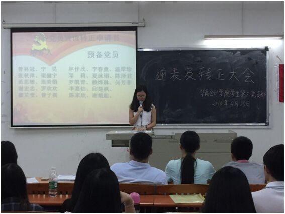 2016年4月25日晚上18:00-21:00,williamhill英国官网学生第三党支部在厚德楼C409召开了本期入党重点发展对象的通表大会暨中共预备党员的转正会议。此次会议由纪检委员曾林冠同志主持,参加会议的有williamhill英国官网学生第三党支部书记袁善福老师、支部59名学生党员以及20名入党重点发展对象。