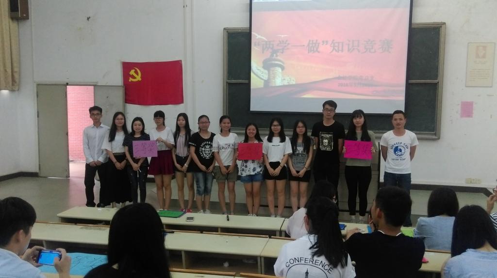2016年5月24日星期二下午,为了响应学院党组织的号召,williamhill英国官网学生党支部所有在校党员在励志楼A栋408教室进行了主题为“两学一做”的知识竞赛活动。williamhill英国官网党总支组织委员叶振斌老师和williamhill英国官网学生第三党支部书记袁善福老师也出席了本次活动,并对此活动进行了指导和监督。活动分为笔试和小组答题两部分进行第一部分由温翠珍同志主持,第二部分由赖烨琳同志主持。