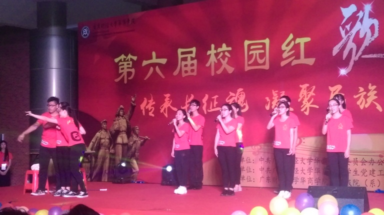 2016年5月28日晚上19点,广东财经大学华商学院学生党建工作委员会组织开展以“传承长征魂、凝聚民族心”为主题的第六届校园红歌会在启智楼一楼举行。