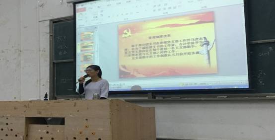 最后,郑秋丽同志对下学期的党支部分配情况进行说明:今学期的第五党支部将会分为三个党支部。15级的所有成员分为两个支部,即新的第三党支部和第四党支部。16级的党员与17级的新生党员成为新的第五党支部。她希望在今后,所有支部能协同工作,共同努力。