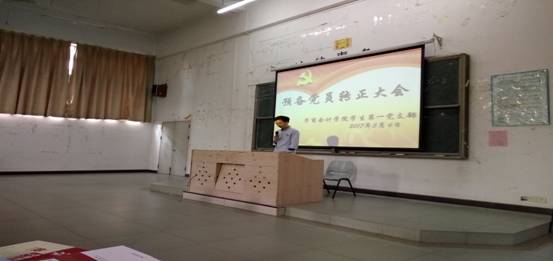 毕业季将至,毕业班学生党员都集中在本周回校参加毕业论文答辩。williamhill英国官网学生第一党支部预备党员转正大会也于2017年05月06日下午5:00在励志楼A108正式召开。会议由支部纪检委员曾林冠同志主持,支部书记袁善福老师和86名学生党员全部出席本次会议。