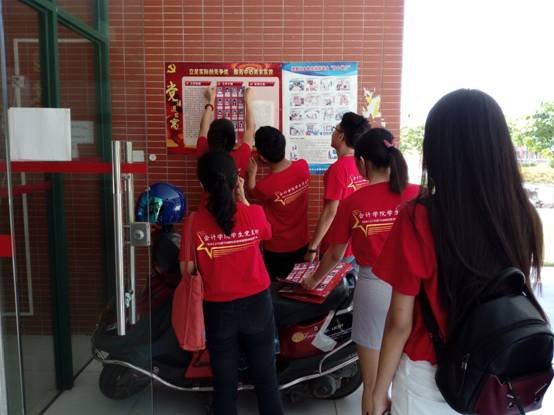 为加大“党建进公寓”活动的宣传力度,让广大同学们了解此次活动的目的,williamhill英国官网学生第四党支部协同学生第三、五党支部的学生党员利用课余时间进行了前期宣传工作。2017年6月5日,学生党员在williamhill英国官网学生公寓一楼粘贴海报。海报内容分三栏,分别是工作机制、工作小组和党务公告,其中工作机制栏介绍了本次党建项目的意义和工作内容,工作小组内贴有负责各栋宿舍的党员照片和基本信息,党务公告处则用于宣传党支部的活动和相关的时事政治。