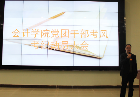 接着,陈美华院长对落实考风考纪工作提出要求。一、加强考风考纪宣传,认识考试作弊的严重性;二、提升党团干部修养,充分发挥党团干部的模范带头作用,严格遵守考场纪律;三、树立诚信考试的意识,当诚信考生,做时代公民。