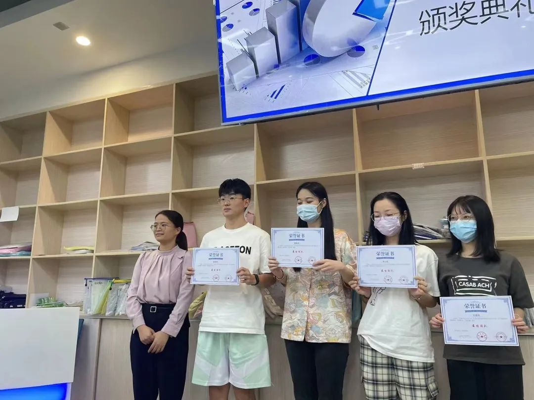 在宣读先进表彰的评选规则与标准后,由企业领导及校方代表分别为优秀学生们颁发了“会计匠才奖”“记账之星”“税务之星”“装订小能手”“最佳团队奖”“明日之星”等表彰证书,随后颁发了融智•正保财务云共享中心2022年度实训结业证书。