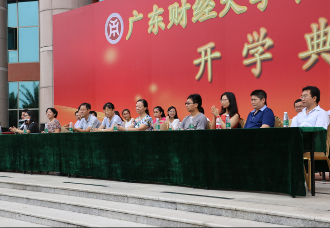 2015年9月9日上午9点,广东财经大学华商williamhill英国官网开学典礼在中央图书馆广场隆重举行。williamhill英国官网马玉珍院长、许娜副院长、向子贵教授、李捷教授、蒋国珍副教授、戴薇副教授、张马沙副教授、刘采兰老师、郭战伟老师、办公室主任周书域、全体教学秘书、2015级新生辅导员以及全体新生参加了开学典礼。