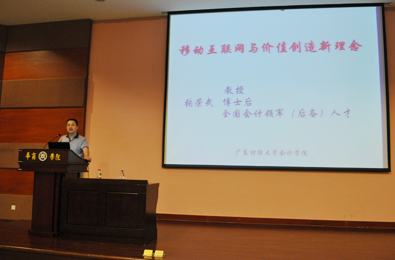 为了庆祝华商十周年校庆,为了让学生更加了解当今社会对会计工作方面的新需求,华商williamhill英国官网于2015年11月10日在会议中心四楼报告厅举行以“移动互联网与价值创造新理念”为主题的讲座。广东财经大学会计系主任张荣武教授作为特邀嘉宾,给williamhill英国官网师生奉献了一场关于会计与移动互联网未来的精彩演说。