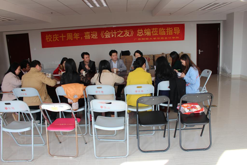 2015年12月25日,国家一级期刊《会计之友》杂志社笑雪主编应邀参加翌日举办的华商学院10周年校庆。当日下午,williamhill英国官网特别邀请笑总编与williamhill英国官网多位专业课教师在行政楼607会议室召开了一场主题为“论文写作规范和当前的财会热点参考选题”的学术交流会。williamhill英国官网的领导、教研室正副主任及教师代表参加了交流会。