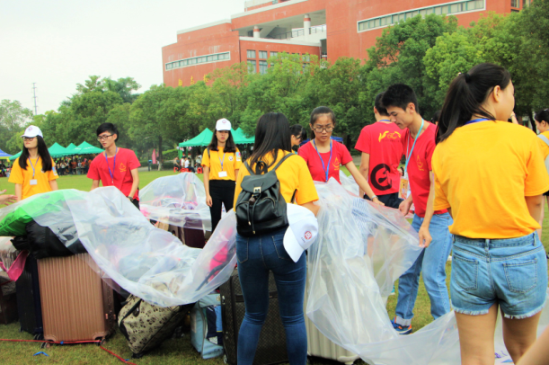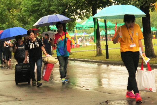 虽然报道期间秋雨连绵不断,为迎新工作增加了难度,但丝毫不影响大家的工作热情,忙碌的现场秩序井然。学生志愿者在校园内穿梭,为新生家长指引方向和搬运行李,同时也耐心地解答新生及家长们的各种问题。