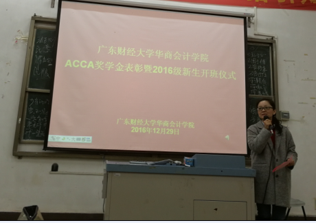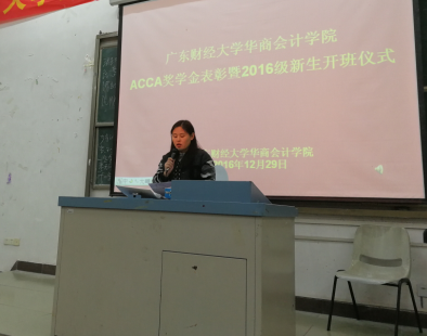 12月29日晚上7点,华商williamhill英国官网ACCA奖学金表彰暨2016级新生开班仪式在励志楼D208隆重召开。williamhill英国官网院长马玉珍、副院长许娜,中博诚通董事师韫、大区经理杨智浩、教学部经理罗金龙以及ACCA各年级辅导员、班主任和全体学生参加了本次大会。