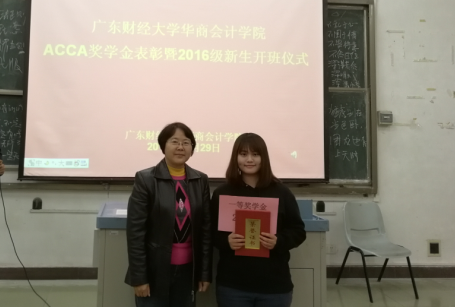 其次,许娜副院长宣读华商williamhill英国官网ACCA奖学金评选办法和2016年ACCA学生获奖名单。williamhill英国官网领导和中博诚通董事师韫分别为获得一二三等奖学金的ACCA优秀学生颁发了奖金和荣誉证书。一等奖学金获得者——13级ACCA班陈春谨同学作为代表,给同学们分享了ACCA的学习心得和体会。