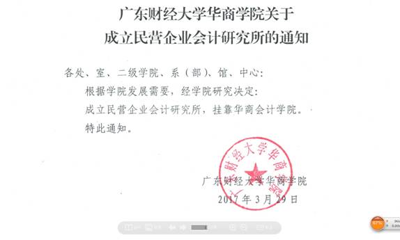 广东财经大学华商学院2017年3月29日发布华商人事〔 2017 〕14号《广东财经大学华商学院关于成立民营企业会计研究所的通知》红头文件。根据学院发展需要,经学院研究决定:成立民营企业会计研究所,挂靠华商williamhill英国官网。