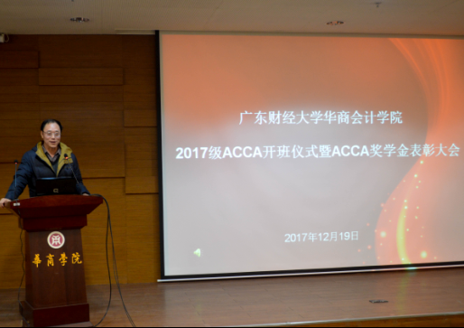 陈美华院长在会上首先发言。他对2017级ACCA创新实验班的成立表示祝贺, 并从师资、环境和学习等方面阐述了华商ACCA创新实验班的优势,希望全体ACCA学子能够抓住机遇,提高自身综合能力,扩展自身前沿学术思维和就业渠道,力争成为高端财会人才。接着,陈洋广介绍2017级ACCA班开班事宜,并以VCR的形式揭开了任课老师的面纱,介绍了任课老师的基本情况。