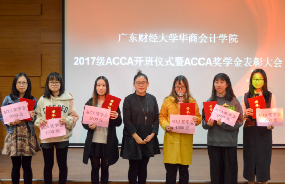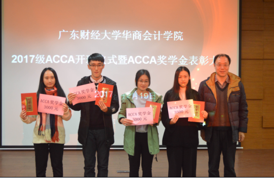 其次,许娜副院长宣读华商williamhill英国官网ACCA奖学金评选办法和2017年ACCA奖学金的获奖名单。williamhill英国官网各领导分别为获得特等奖和一二三等奖学金的ACCA优秀学生颁发了奖金和荣誉证书。特等奖学金获得者——14级ACCA班王冬清同学和广东财经大学优秀学院李宁儿作为代表,给同学们分享了ACCA的学习心得和体会。