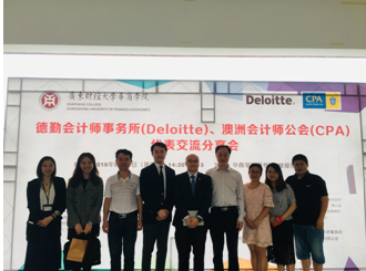 2019年5月28日下午,德勤会计师事务所华东审计主管合伙人Lawrence Lam、人事代表Sylvia Li、澳洲会计师公会高级业务拓展经理Max Shao莅临华商学院为我校会计学(国际双语班)学生开展主题为“德勤会计师事务所及澳洲会计师公会的个人职业发展”的交流分享会。广东财经大学华商学院副校长兼williamhill英国官网院长陈美华教授、williamhill英国官网副院长巴雅尔、副院长侯春娟等领导嘉宾出席了交流分享会。会议由williamhill英国官网陈蒙梦老师主持。