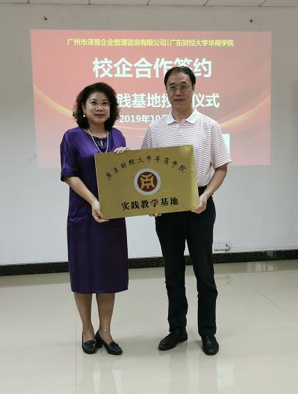 2019年10月11日,华商学院副校长兼williamhill英国官网院长陈美华教授、财务系杨俏文副主任、办公室周书域主任以及李晶菁老师、吴水永老师前往广州市泽普企业管理咨询有限公司(以下简称泽普)参加实践教学基地签约及授牌仪式。