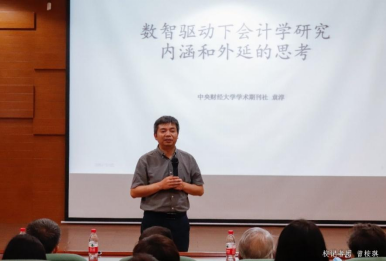 中央财经大学袁淳教授作了主题为“数智驱动下会计学研究内涵与外延的思考”的报告。他结合自身经历,依托会计专业当前的学科建设及就业情况,通过最近流行的网络热议词——“内卷”引出会计学研究所存在的“无益的精益求精”、“将简化繁”等问题。他提到,若要避免会计学研究的“内卷”,应该认真分析现存的问题,考虑社会生活的所思所想,增强学科之间的交流,学会交叉研究,发挥会计学对于微观现象和企业行为理解的优势。随后他从多个方面提出会计学研究应跟上时代发展的潮流,不断融入新思路、新方法,实现多元化拓展,以适应社会发展的需要。