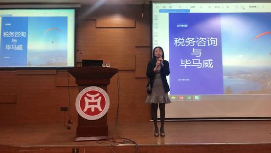 然后,罗女士以毕马威为例,向大家展示了会计师事务所的工作氛围与环境,毕马威是中国内地首家获准中外合作开业的国际会计师事务所,致力于向客户提供全方位、多样化的税务服务,,此外毕马威的员工关怀和社会责任也十分出色事务所始终坚持提升可持续发展能力,秉持终身学习、共融与多元化的理念,促进包容性发展。