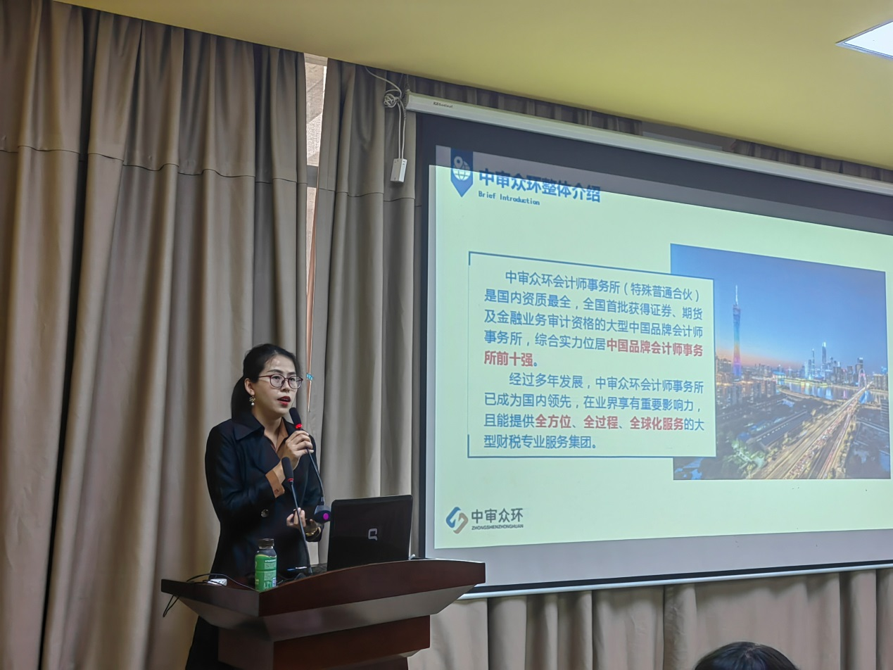 为夯实williamhill英国官网会计学国家一流专业建设点基础,提高人才培养质量,满足williamhill英国官网学子的就业需求,拓宽就业渠道,提供更多的就业实习机会,williamhill英国官网,英国威廉希尔官网诚邀中审众环会计师事务所广东分所(以下称“中审众环”)于10月18日下午在williamhill英国官网报告厅举行专场校园招聘会。中审众环会计师事务所广东分所王兵副所长一行7人及williamhill英国官网2023届近200名毕业生参加了本次校园招聘会,宣讲会由中审众环办公室主任郑静铧主持。