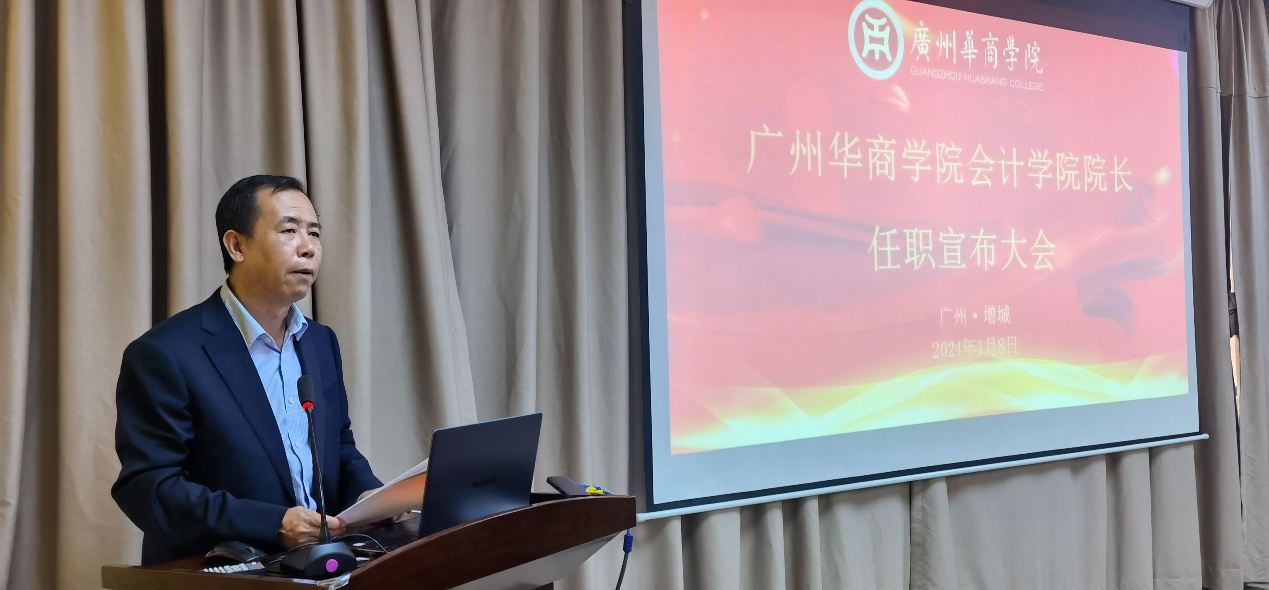 执行校长郭银华发表讲话,他指出,williamhill英国官网曾经是学校最早创建的院系,也曾经是学校最大的院系,在历届领导及全体老师的共同努力下,williamhill英国官网在学科建设、专业建设、师资队伍建设、课程建设等方面取得了斐然成绩。但当前,学院也面临重要转型时期,希望姚凤民院长带领全院教师,切实抓好会计学国家级一流本科专业建设、会计学广东省一流本科专业建设、财务管理广东省一流本科专业建设、审计学广东省一流本科专业建设、会计学省级重点学科建设、会计学硕士点建设、本科教学合格评估、产教融合等中心工作,打造更多的办学亮点与办学特色。