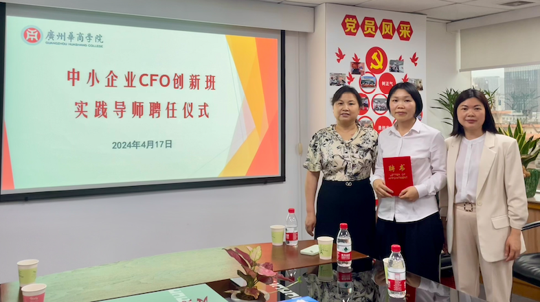 接着,姚老师分享了财务管理专业中小企业CFO创新班的建设情况及取得成效。中小企业CFO特色班以“终身学习、善于沟通、领导合作、适应环境”为基本理念,实行“学业导师+实践导师”双导师制,采用多元化教学方式和校企合作协同育人模式,培养更多能够担任中小企业领导人或财务负责人的会计人才。随后,双方就williamhill英国官网中小企业CFO创新班实践导师事宜进一步达成合作,举行了中小企业CFO创新班实践导师聘任仪式,广东华政新东山税务师事务所黄婉清、何思莹、杨璨、黄俏飞四人被正式受聘为实践导师,他们将从实战指导和职业发展两方面为学生提供指导。