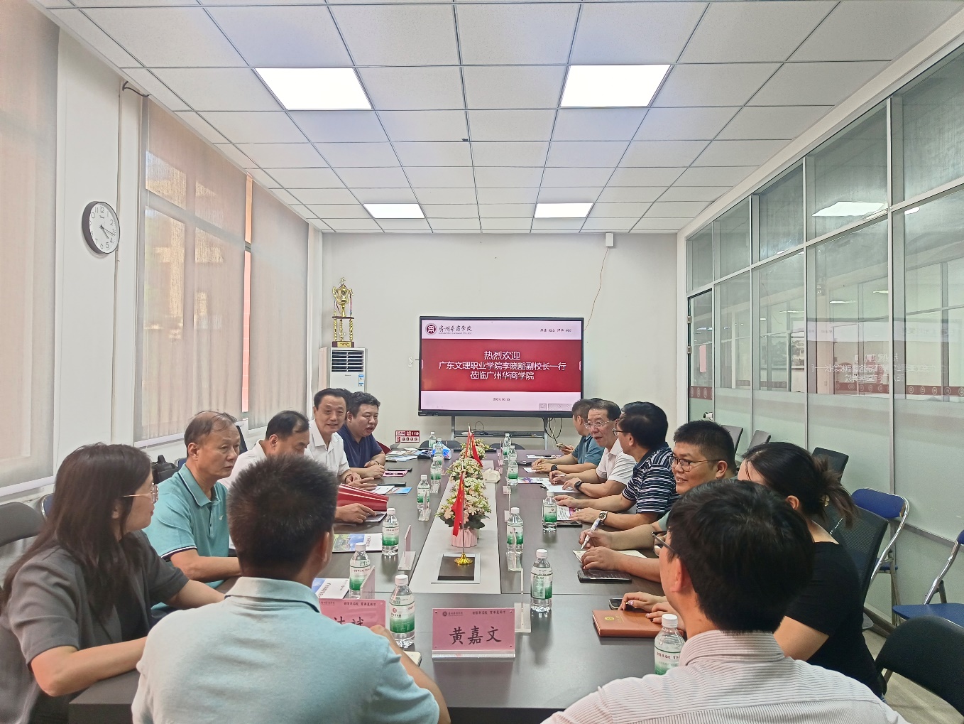 为深化校企合作,推动教育链、人才链与产业链、创新链有机衔接,2024年10月16日下午,广东文理职业学院副校长李晓豁教授率该校相关职能部门与二级学院负责人一行来williamhill英国官网现场观摩产业学院,交流产教融合工作,广州正誉集团副总裁熊浩先生一行陪同考察。现场观摩后,学校副校长吕峻闽教授在williamhill英国官网会议室接见了来访客人,并热情介绍了教育集团与学校产教融合工作的部署与发展现状,表示兄弟院校携手共创是产教融合互惠的趋势。部分在家院领导、产业学院班子成员及实践中心负责人参加了交流。