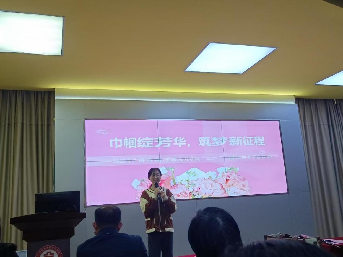 在女教职工代表分享环节,高艳荣、陈淑扬、伍程程以及宋超4位老师依次登台,从各自独特的视角分享了工作中的经验与感悟。她们展现了女教职工们在不同岗位上的巾帼风采。