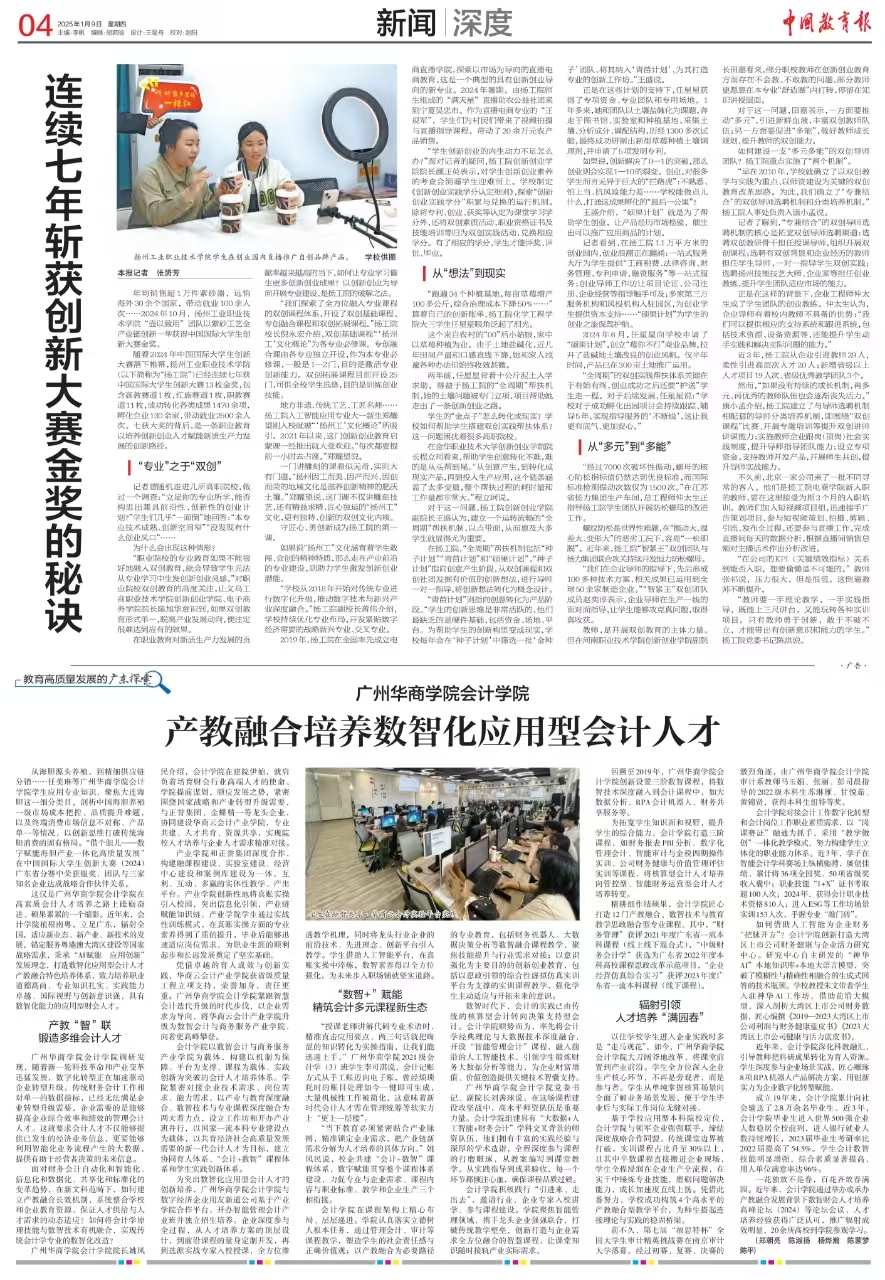1月9日,《中国教育报》第四版显著位置刊发了《williamhill英国官网,英国威廉希尔官网产教融合培养数智化应用型会计人才》一文,这一成果登上权威教育媒体,标志着williamhill英国官网,英国威廉希尔官网在探索数智化应用型会计人才培养路径上获得广泛认可。