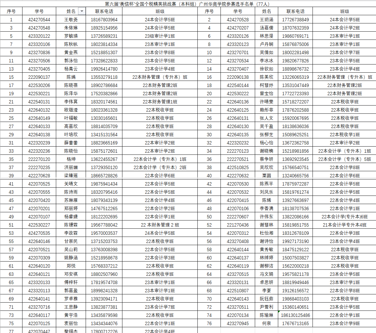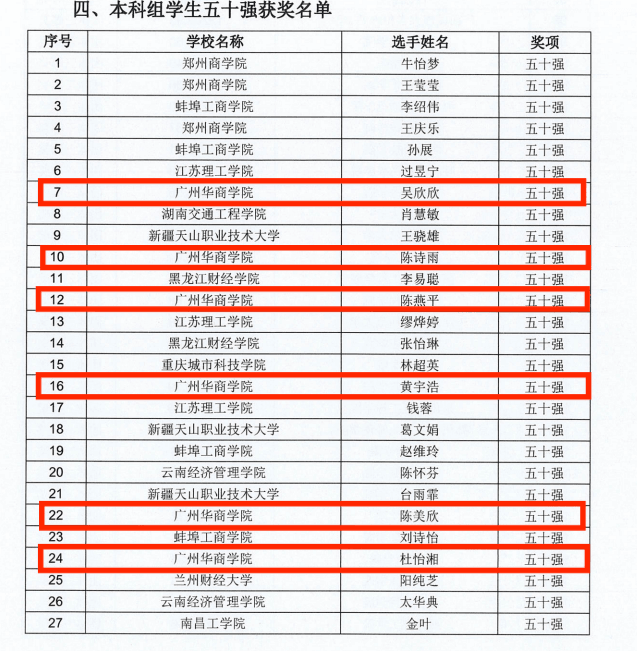 在个人赛中,我校8名学子脱颖而出,成功入选全国50强,他们分别是下表中标记的学生。