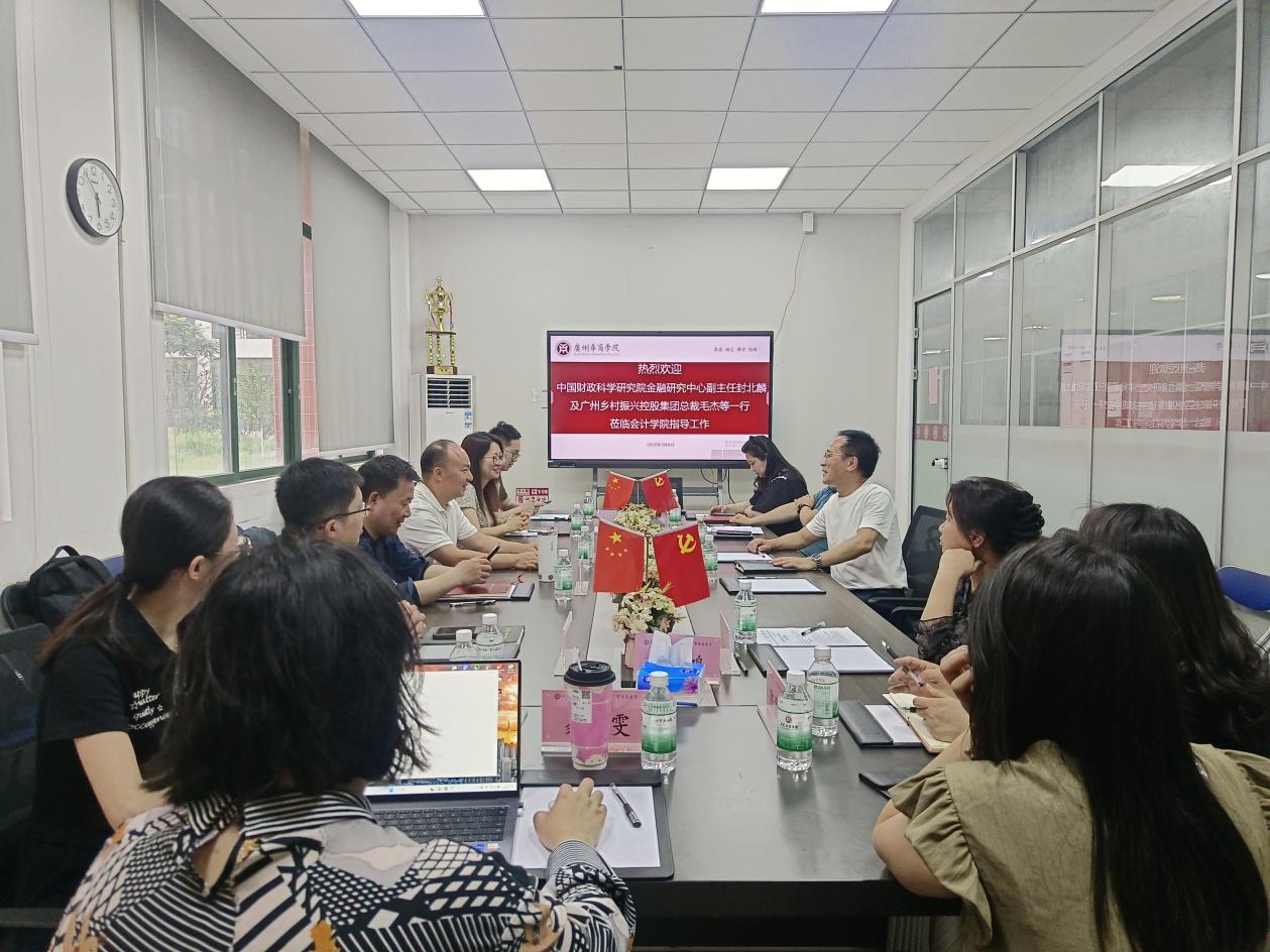 2025年5月8日下午,中国财政科学研究院金融研究中心副主任封北麟、副研究员黄亦炫、助理研究员黄宝竹及广州乡村振兴控股集团总裁毛杰、副总裁何青倩等莅临williamhill英国官网指导工作,williamhill英国官网党委书记刘善球、副院长杨旻、副院长周书域,以及院长助理陈蒙梦老师、陈平老师等共同参会。双方围绕“乡村振兴战略落地”与“应用型人才培养”两大主题展开思维碰撞。