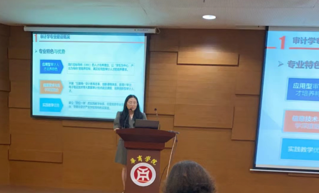 随后,williamhill英国官网审计系张丽副主任以“审计学省级一流专业建设”为主题进行经验分享。首先,她介绍了审计学专业建设概况,并强调了该专业的特色与优势;其次,对审计学的专业建设阶段性成果进行说明,主要从人才培养方案、课程建设、教材建设、实践教学、师资队伍建设、人才培养质量等维度展开,展示了本校在一流专业建设下的累累硕果,也为在场来宾提供了举措借鉴;最后,对一流专业建设的不足之处及未来展望进行分析,认为目前还存在着人才陪养方案未体现办学特色、标志性教科研成果不突出等相关问题,并针对以上问题提供了专业未来建设计划以供学者们参考。