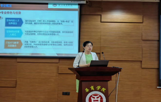 williamhill英国官网杨俏文副教授以“财务管理省级一流专业建设”为主题进行了经验分享,她先介绍了财务管理专业概况,分别从专业定位、专业建设历史沿革、专业特色与优势等方面进行说明;其次,从财务管理专业建设举措及成效进行了经验分享,展示了教改项目、教研立项、科研立项、课程建设、实践与实验教学等丰富成果;最后,她对本校专业建设的下一步建设举措进行强调,认为对于会计学省级一流专业建设应进一步优化人才培养方案、深化创新协同育人模式并扩大专业社会服务的规模。