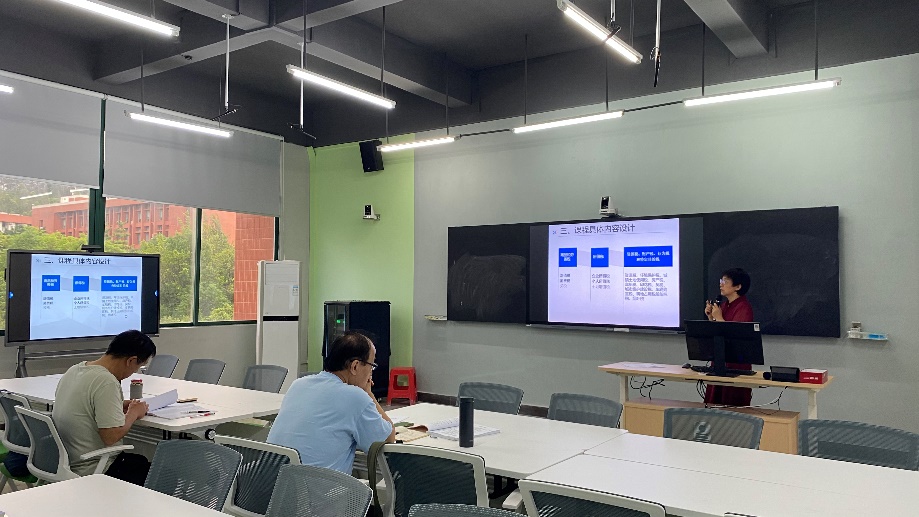 讲课完毕后,磨课专家对做出点评。专家称赞刘教授的说课内容完整、结构清晰、设计合理;讲课内容丰富、主次分明、易于理解。胡教授建议,在课堂开始时,将本次课堂的重难点先做一个提示,便于学生在课堂之初能对本节课有明确定位。