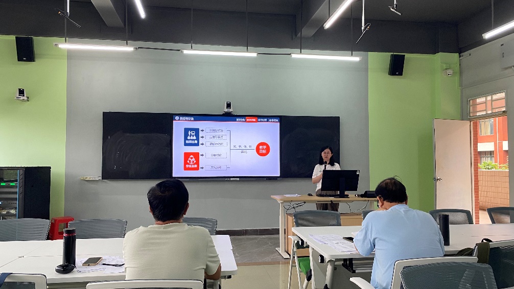 第二位磨课教师是周群老师。周群老师本学期主讲《税收筹划》,她从教学分析、教学策略、教学过程和教学反思四个维度来展开说课。周老师对结合了她所教授的两个不同的班级分别作了学情分析,对课程定位清晰准确,教学重难点突出,结合税收筹划对企业的作用来展开教学内容和教学活动设计。