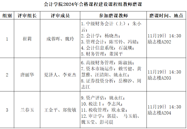 本次磨课活动共分为三组,评审专家分别为:第一组由崔莉、成蓉晖、魏玲三位教授组成;第二组由唐丽华、夏济人、李亚杰三位教授组成;第三组由兰春玉、王金平、郑俊敏三位教授组成。