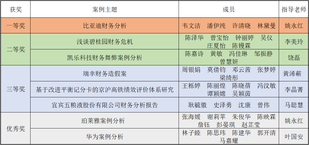 第五届CFO财务案例分析比赛获奖名单