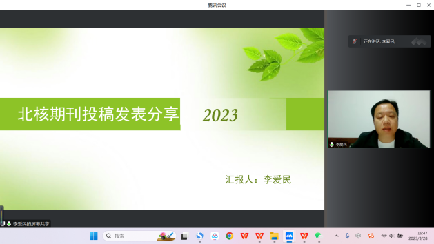 李爱民副教授对北核期刊投稿发表经验进行了分享。首先,李爱民副教授对选刊与分析期刊风格、选题方向的确定、论文署名技巧、如何关注论文投稿进度与进行修改等提高核心论文投稿成功率影响极大的关键性问题进行了详细介绍。随后,李爱民副教授以《财会通讯》期刊为例,为审计系教师完整展示了论文投稿的流程,让更多青年教师了解了核心论文的发表流程和注意事项。